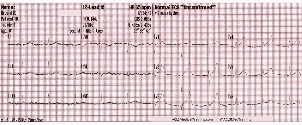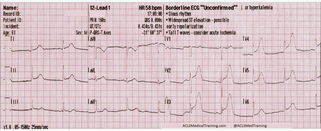 The ECG continued to show dynamic ST-segment and T-wave changes but they were mostly resolved by arrival at the hospital. The attending physician was waiting and there was some hesitation about sending the patient straight to the cardiac cath lab.